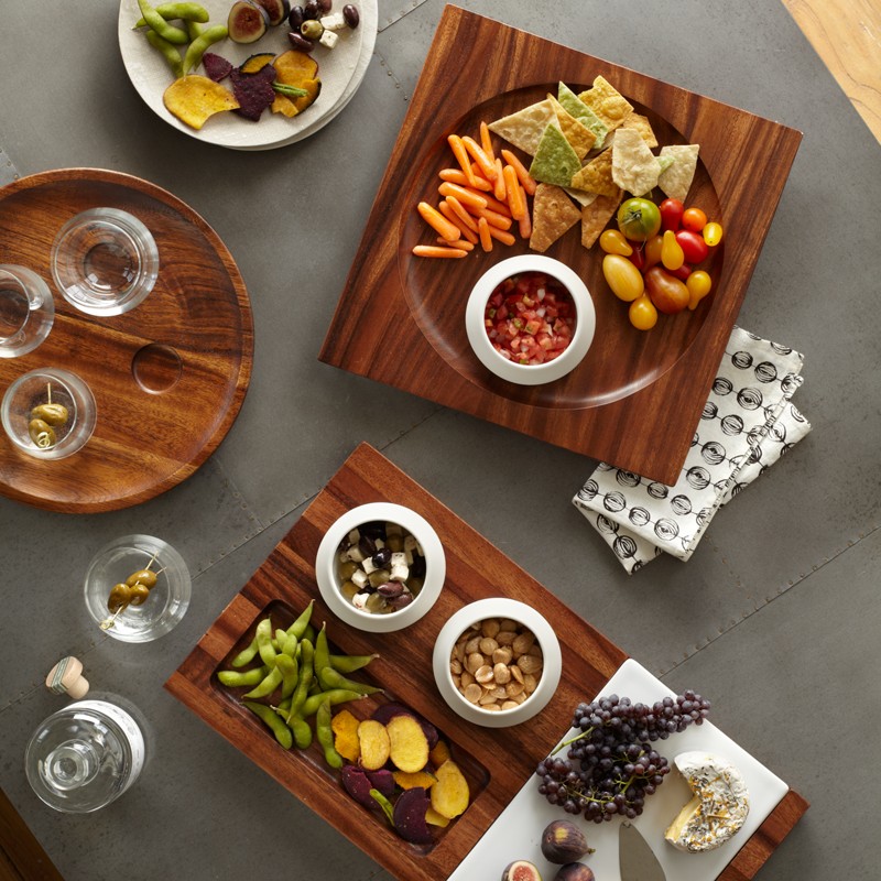 The secret to effortless entertaining is choosing serving pieces that are as functional as they are stylish–pieces like our modern, wooden and ceramic chips and dip set. Place the bowl inside this high quality, natural acacia wood tray to serve up finger foods quite elegantly. Or use the bowl and the tray separately for chips, pretzels and other nibbles. Exclusively from RedEnvelope.