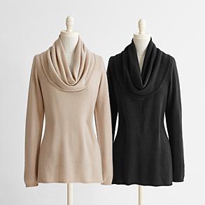 "The cashmere is relative lightweight, which isn't bad. The neckline can be a little low, so a tank or camisole might be needed. I liked the fit altho' it was a tad tight around the hips and a bit loose around bust and shoulders. I tend to be a size 6-10 on top and ordered a Medium. Any smaller and it would not have fit over my waist and hips. Larger would have been baggy on top."