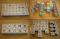 Japanese blocks: Sides with plain text have all hiragana with katakana, with dakuten (ten-ten) and/or with handakuten (maru), and with pronunciation in roman characters. Sides with color (blue/yellow, red/green) have a single hiragana character. Sides with a picture of an animal have english and japanese. Includes kanji numbers 1-10 with roman numerals, hiragana and english spelling. 19 of the 46 hiragana characters are repeated throughout the blocks. All blocks make up a picture of Japan."