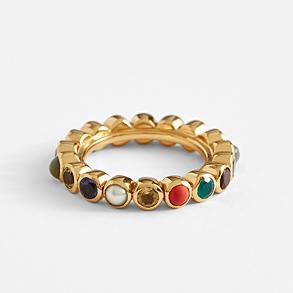 Deemed cosmic rays, gemstones are used in India to bring good fortune and ward off the effects of evil. To achieve perfect balance in life, Hindus recommend wearing a stone representing the planets and sun that they consider deities. This ring gorgeously combines a stone from each to create a beautiful "solar system" right on her finger. Exclusively from RedEnvelope.