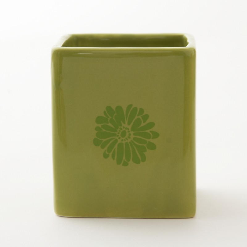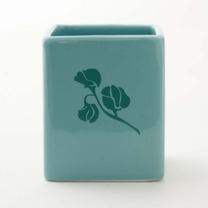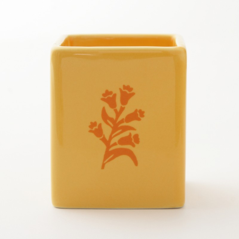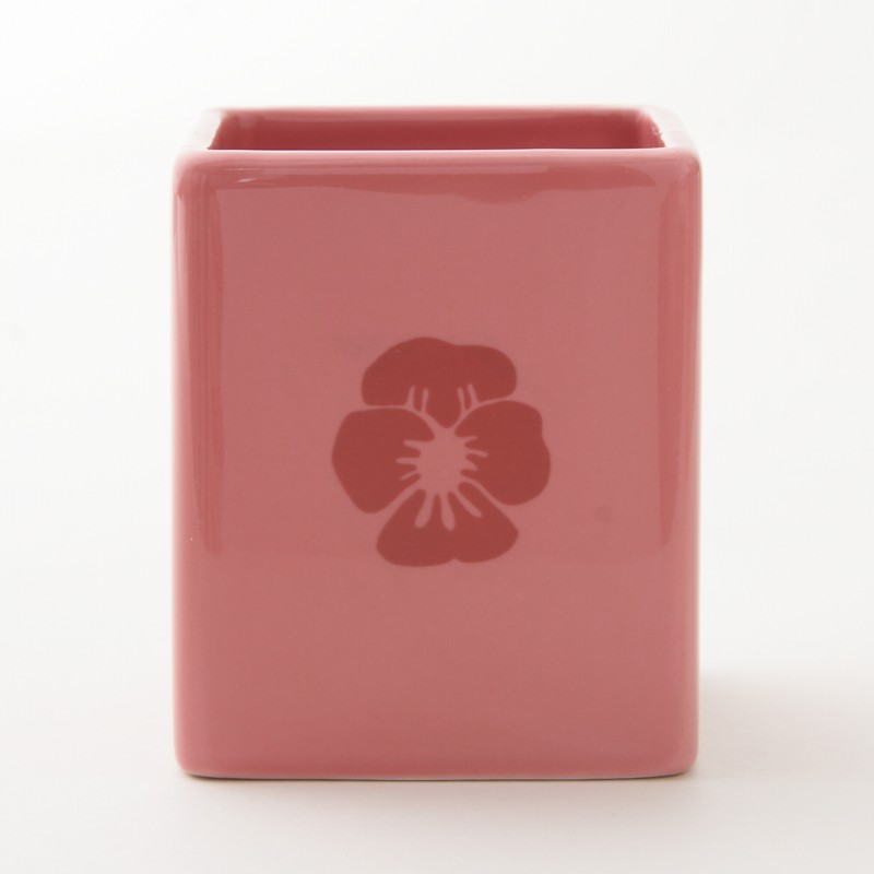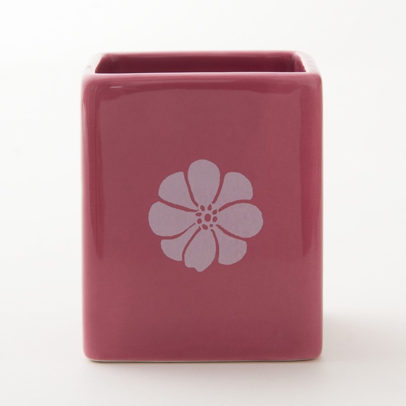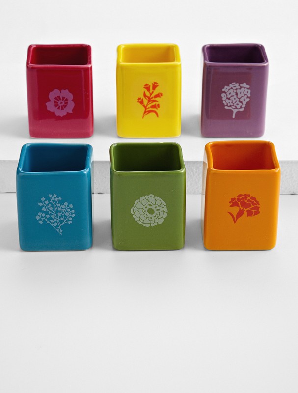 • each candy-colored earthenware pot features an illustration of the corresponding flower